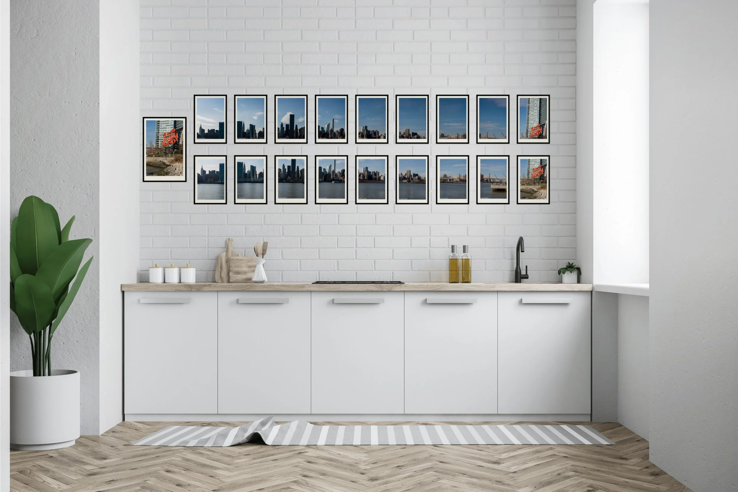 die pepsi series vereint 18 fotografien in einer präzisen zweireihigen panorama-installation. urbane linien, farben und strukturen verdichten sich zu einem grafischen rhythmus, der zugleich streng komponiert und lebendig wirkt.